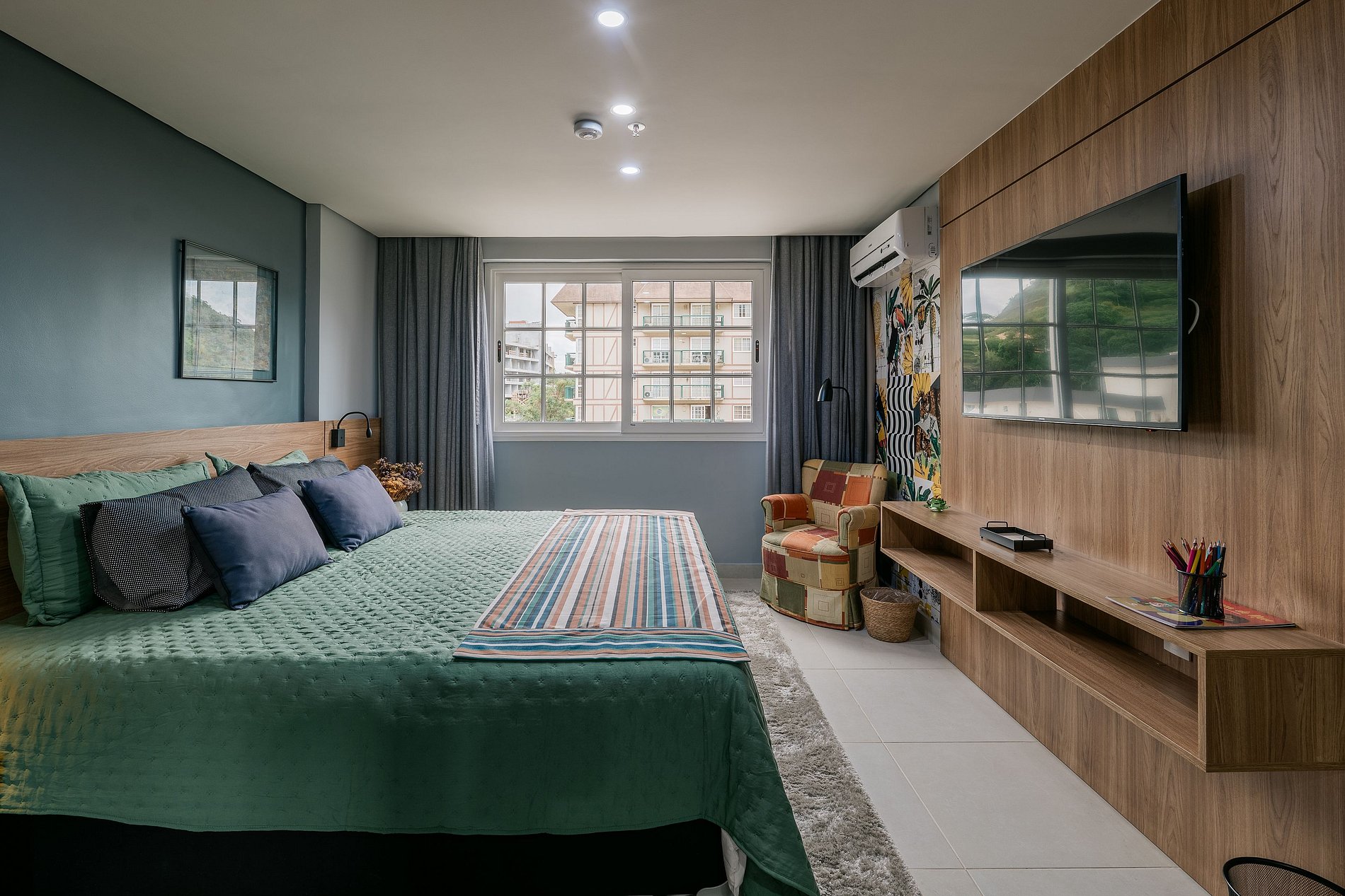 O estúdio foi meticulosamente preparado para oferecer o máximo de conforto, tranquilidade e revitalização. Apresentamos uma espaçosa cama King, perfeita para acomodar dois adultos. Sem custos adicionais, proporcionamos um colchão de solteiro extra, caso deseje acomodar uma criança ou um acompanhante adicional. Totalmente equipado com eletrodomésticos, louças e roupas de cama e banho de alta qualidade, nossa missão é assegurar que você se sinta em casa, em um ambiente agradável, charmoso e acolhedor. O NATURE 414 possui uma atmosfera natural que empresta um toque caloroso e acolhedor ao espaço.