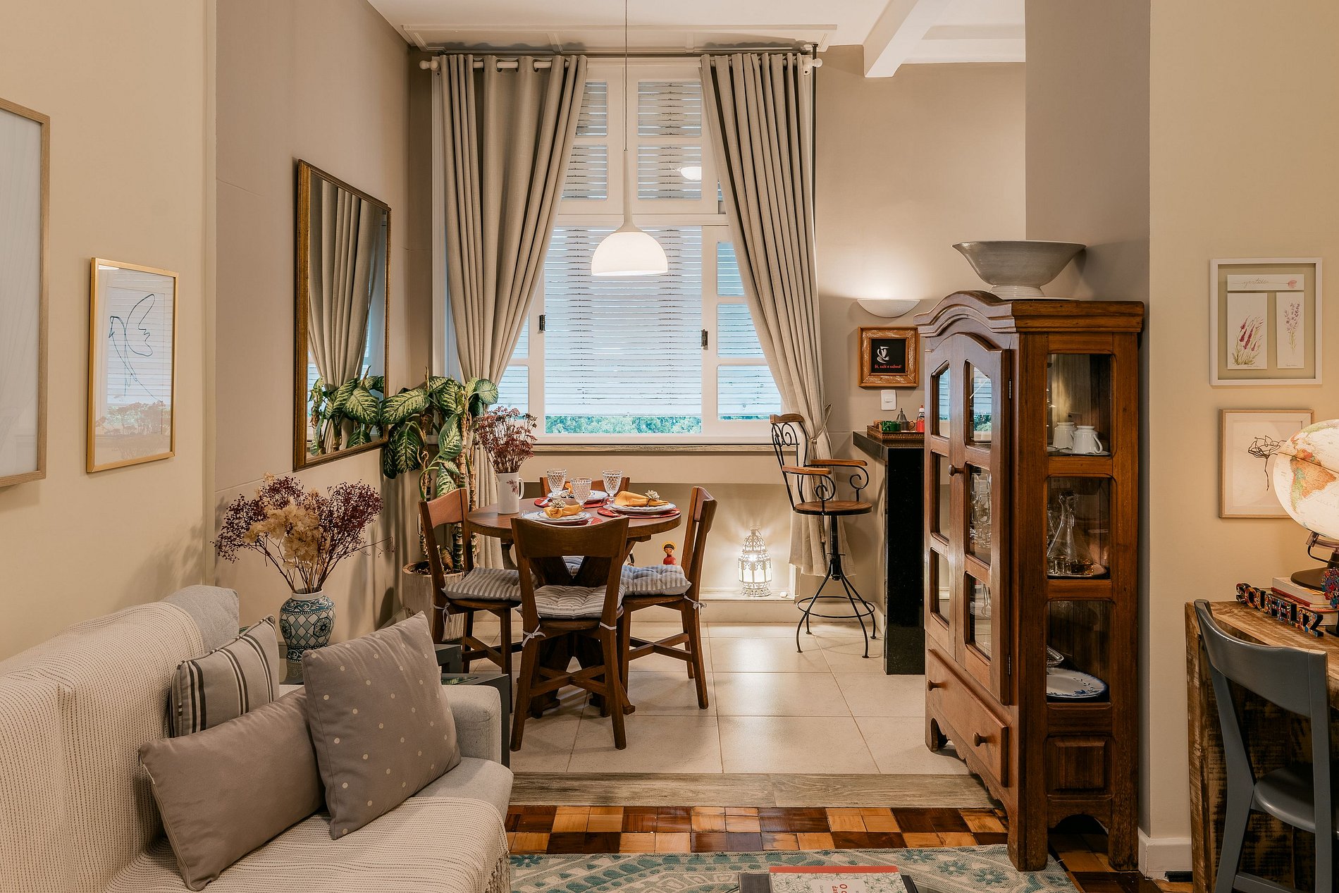 O Loft Maison 360, no Palácio Quitandinha, foi totalmente reformado em seus 40 m². Os ambientes apresentam um estilo moderno rústico, proporcionando uma atmosfera acolhedora de montanha. Acomoda confortavelmente até 5 pessoas, incluindo 1 bebê, com enxoval de alta qualidade, assegurando suavidade e beleza. Possui ar-condicionado e TV de tela plana 50” (canais a cabo NET e internet banda larga). Garagem privativa no interior do Palácio, com manobrista, sem custo adicional. Imperdível!