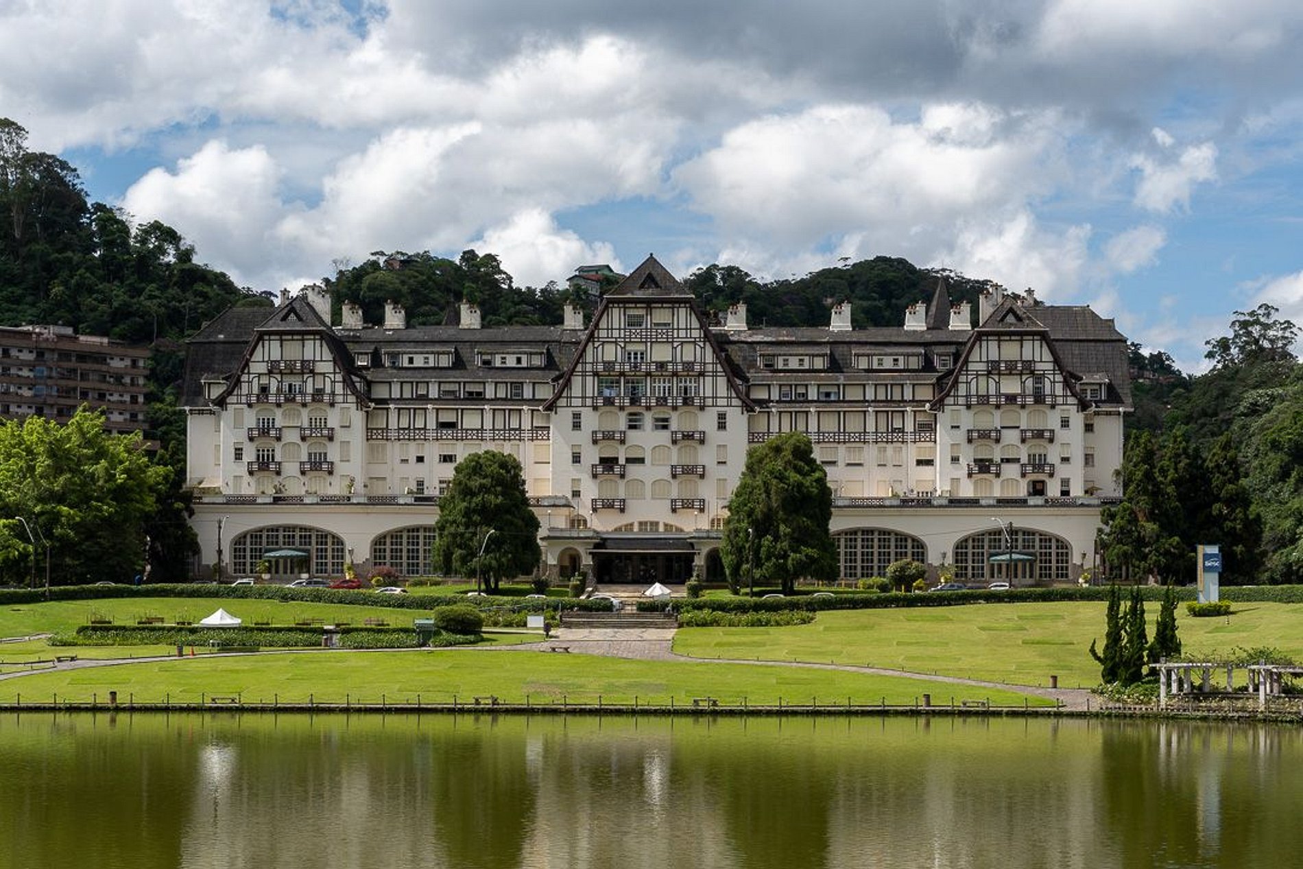 Os hóspedes desfrutarão de acesso privilegiado ao Palácio Quitandinha, ao dirigirem-se à recepção principal do antigo hotel, situada em frente ao lago. Após concluir o check-in, seus veículos serão conduzidos à garagem privativa do palácio, com serviço de manobrista e sem custos adicionais. Além disso, terão livre acesso às áreas externas do jardim, à piscina e ao parquinho infantil ao ar livre. Adicionalmente, convidamos você a explorar o antigo Cassino Quitandinha, agora preservado e administrado pelo SESC, transformado no Centro Cultural Quitandinha. Uma visita guiada oferecerá uma imersão na rica história do local. Nossa oferta gastronômica inclui o Q CAFÉ e o Q BISTRÔ, proporcionando conforto e praticidade durante a sua estadia. Com um cardápio delicioso a preços justos, desfrute do charme de estar dentro do Quitandinha. Além disso, aproveite a programação do Centro Cultural Quitandinha, agora um espaço gerido pelo SESC. Desfrute de peças teatrais, shows musicais, exposições de arte, palestras e eventos voltados para o público infantil. Essa experiência enriquecedora não pode ficar de fora do seu roteiro. Garantimos que será uma experiência imperdível que você não pode deixar de vivenciar.