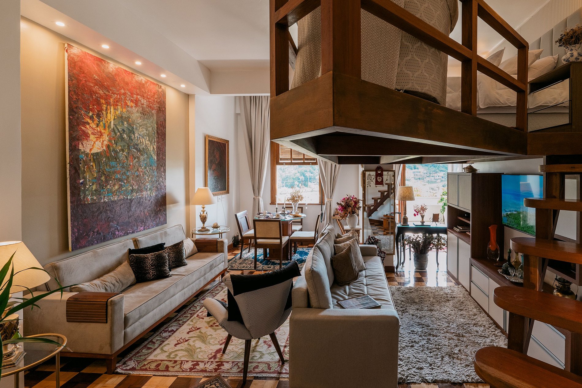 Situado no principal cartão postal da serra carioca, em frente ao Lago Quitandinha, o loft de luxo "QUEEN, A Rainha do Lago" é um espaço extremamente charmoso e elegante. Com decoração sofisticada e espaçosa, apresenta toques clássicos e requintados. As características arquitetônicas foram preservadas, proporcionando um ambiente com "parquet" maravilhoso, pé direito alto e suntuoso. Uma varanda espetacular se abre à sua frente, oferecendo vistas privilegiadas para fotos sensacionais.